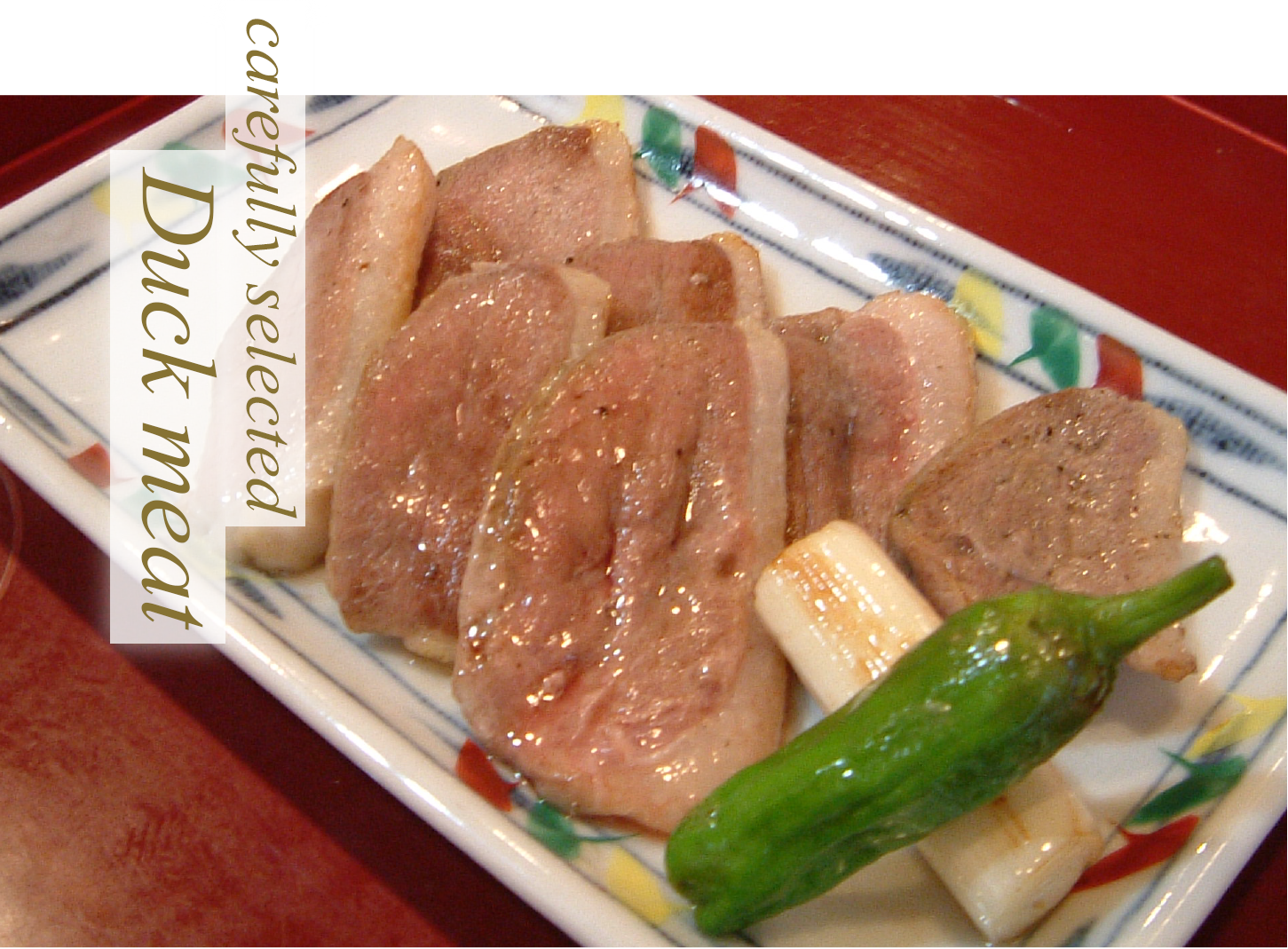 Later, the special soup specifically for “Kamo-seiro” was devised. Generally, soba restaurants make two kinds of soup, cold Karatsuyu (spicy soup) and hot Amatsuyu (mild soup). However, we also made the soup in between those two. In addition, we use 100% domestically-produced duck loin and thigh, and balance perfectly with the special soup.