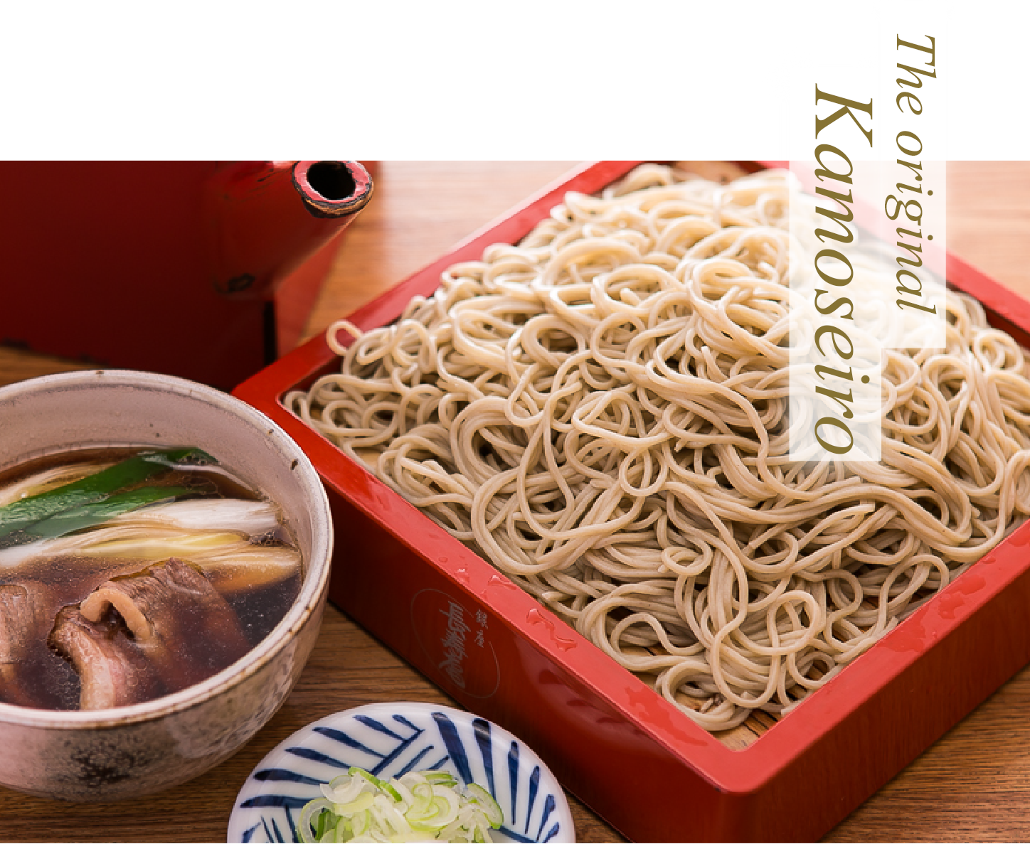 In the spring of 1963, the present president of Choujyuan was eating “Zaru-soba” on the third floor of the restaurant. He accidentally spilled the “Soba-jiru” (dipping sauce for Zaru-soba). There weren’t much soba noodles left on the dish, so he decided to dip the noodles in his daughter’s leftover “Kamonan udon” (udon in a hot soup with duck and green onion) soup. The "first kamo-seiro" that should have been called an accidental product at that time was surprisingly delicious.